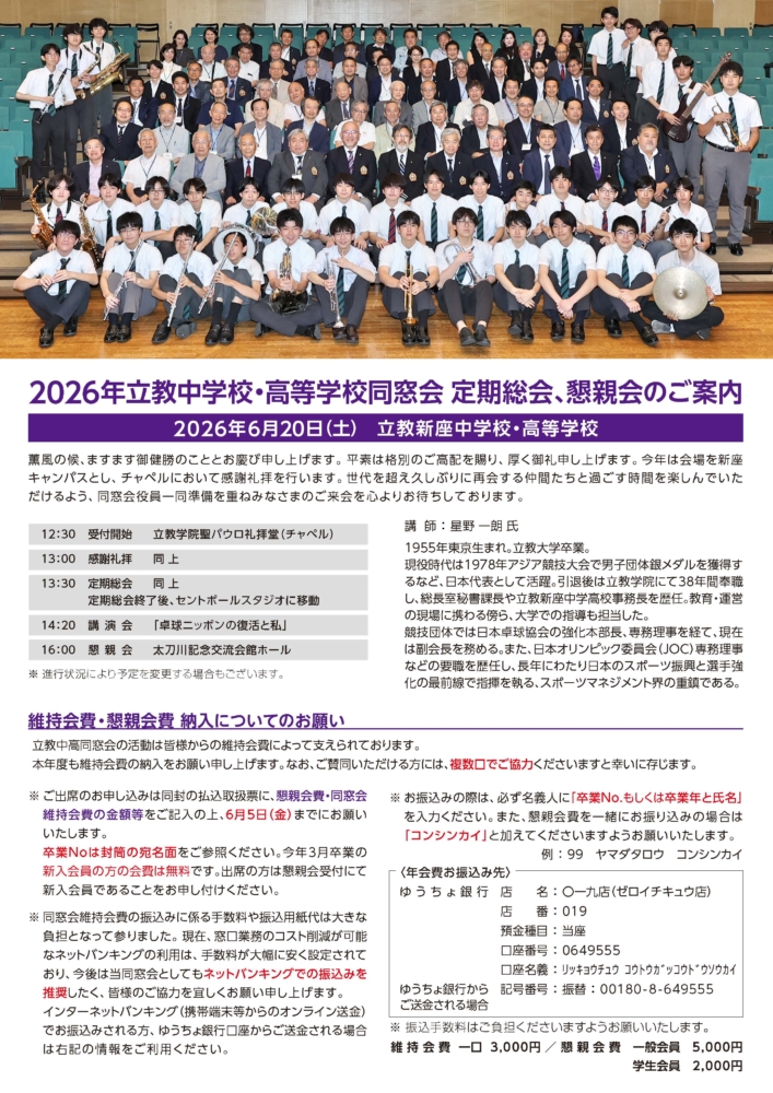 2026年度 立教中学校・高等学校同窓会定期総会開催のお知らせ